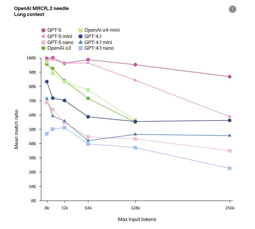 אמנם קיימים מודלים מתחרים עם חלון קונטקסט גדול יותר, אבל בהשוואה לגרסאות הדגל הקודמות של OpenAI מדובר בקפיצת מדרגה דרמטית.